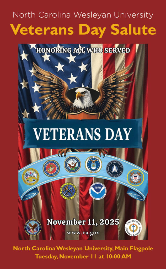 Join North Carolina Wesleyan University on Monday, November 11, 2025 for a Veterans Day event celebrating and honoring the men and women of our armed forces.